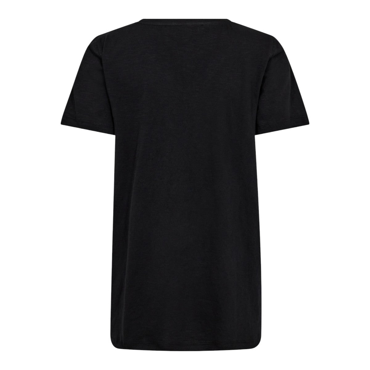 T-shirten er designet i en blød kvalitet med en flatterende v-hals og et let løst fit, der gør den nem at style til både jeans, skindbukser og nederdele. Perfekt til dig, der ønsker en hverdags t-shirt med luksuriøse detaljer.