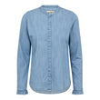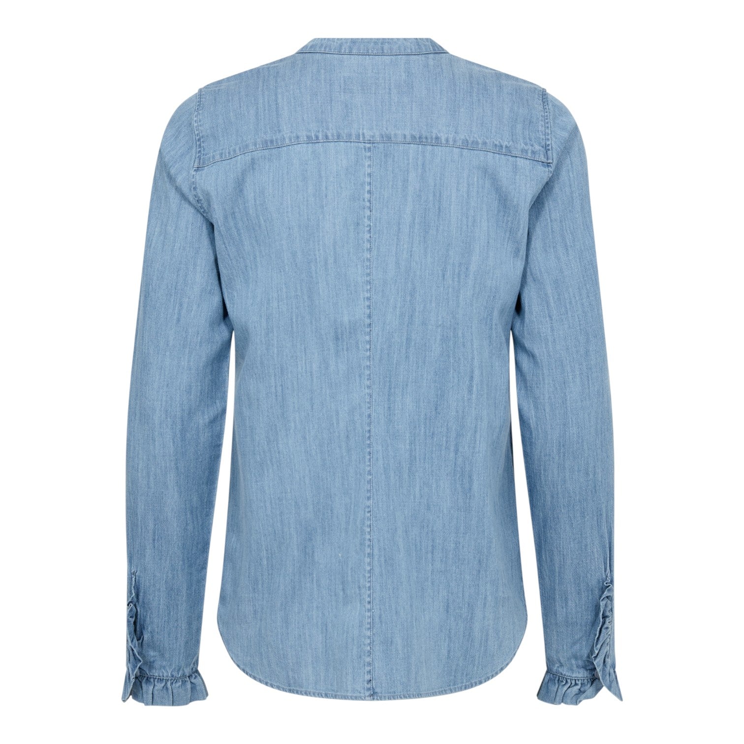 Let og feminin denimskjorte med et enkelt, elegant udtryk og fine detaljer, der gør den nem at bruge både til hverdag og mere pæne anledninger. Den bløde denimkvalitet falder flot og føles behagelig mod huden, mens den runde hals giver et rent og moderne look.