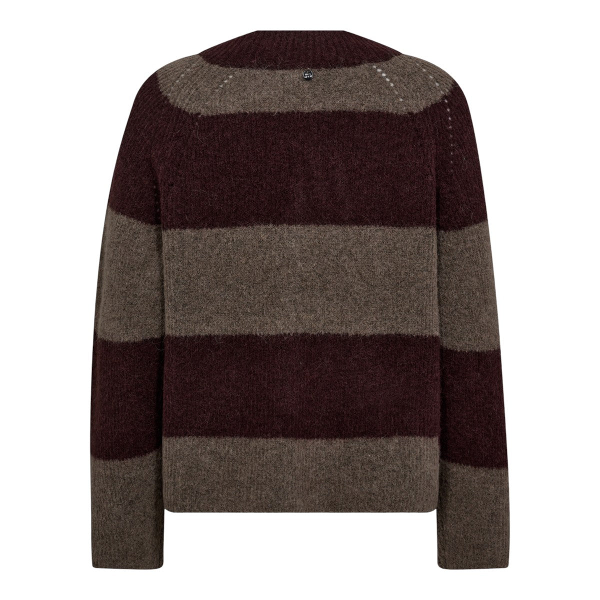 Mos Mosh Mmtaci Stripe Ls V-Neck Knit Fudge