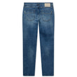 blå Mos Mosh damejeans med en moderne og casual æstetik. Disse jeans har en klassisk medium vask med subtile fade-effekter og lette slidte detaljer, der tilfører karakter og en afslappet fornemmelse.