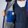 Designet er spækket med funktionelle detaljer såsom en høj beskyttende krave, justerbar hjelmkompatibel hætte i neonfarve, artikulerede ærmer for optimal bevægelsesfrihed og dobbelte manchetter, der holder vand og vind ude. Sikkerheden er i top med reflekser på skuldre, bryst og ærmer for øget synlighed i mørke. Flere af lommerne er fleeceforede for ekstra komfort, og brystlommen indeholder en praktisk pudseklud til briller eller kikkerter.
