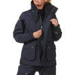 Den forlængede, feminine pasform giver ekstra dækning, mens den fluorescerende hætte kan justeres eller pakkes ned i kraven efter behov. En høj krave beskytter mod kulde og spray, og refleksdetaljer sørger for øget synlighed. De dobbeltforede håndlommer med fleece, justerbare manchetter og en tovejs YKK-lynlås med dobbelt stormflap fuldender designet, der kombinerer funktionalitet, sikkerhed og komfort.