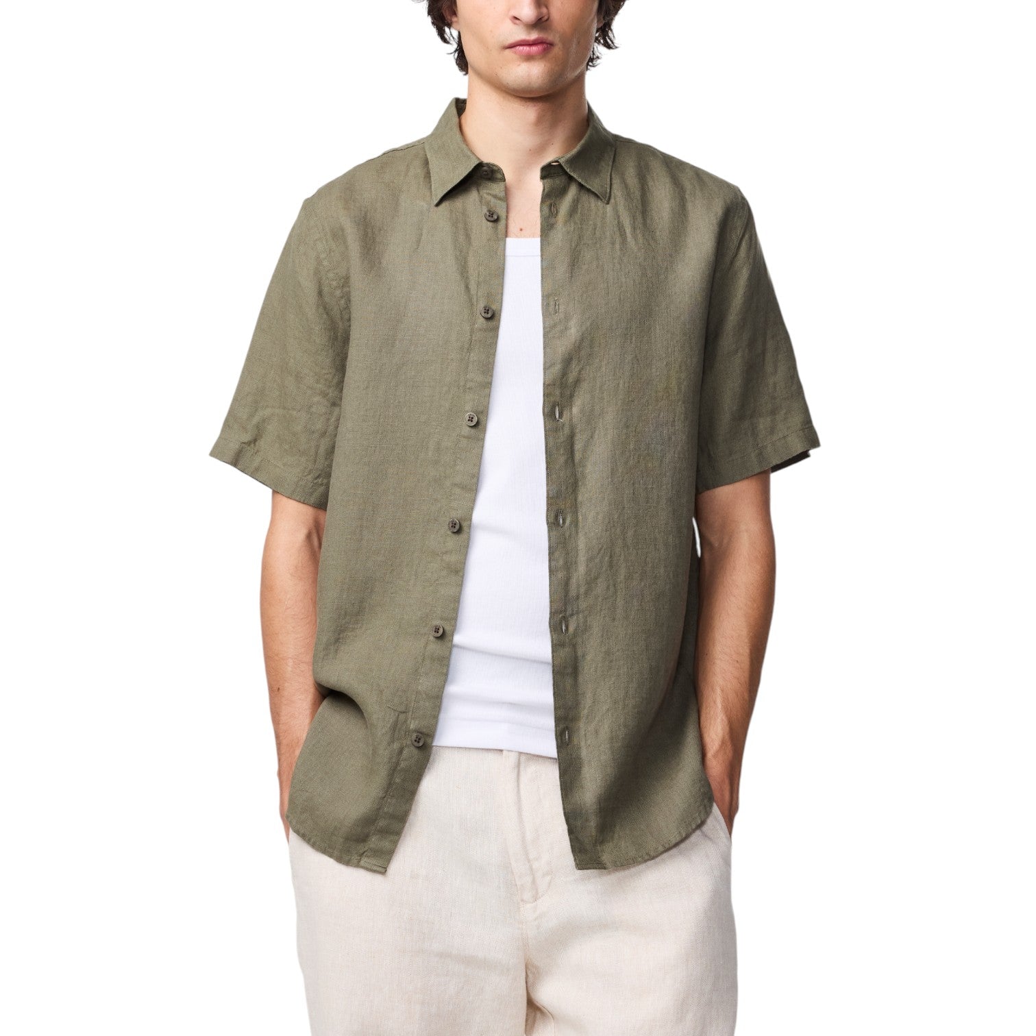 Den lette og åndbare kvalitet af linned gør skjorten ideel til varme dage og afslappede anledninger.
