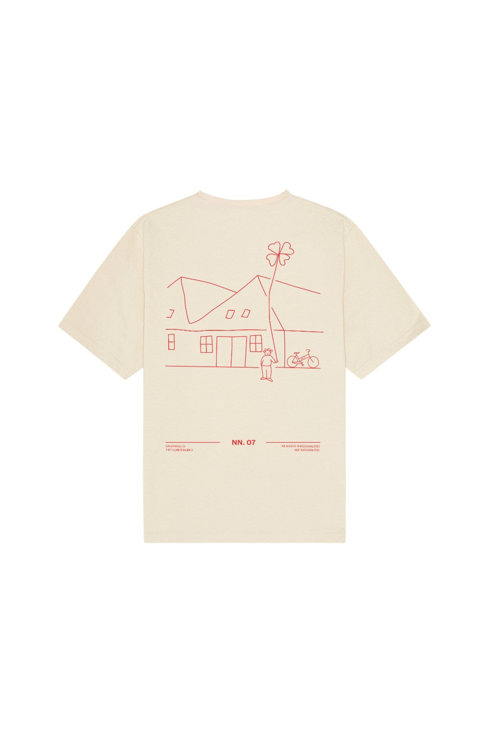På ryggen finder du et stort, vandbaseret print, som tilfører et markant og personligt touch uden at gå på kompromis med komforten. Den bløde bomuldskvalitet føles behagelig mod huden og sikrer, at T-shirten holder formen – selv efter gentagen brug.