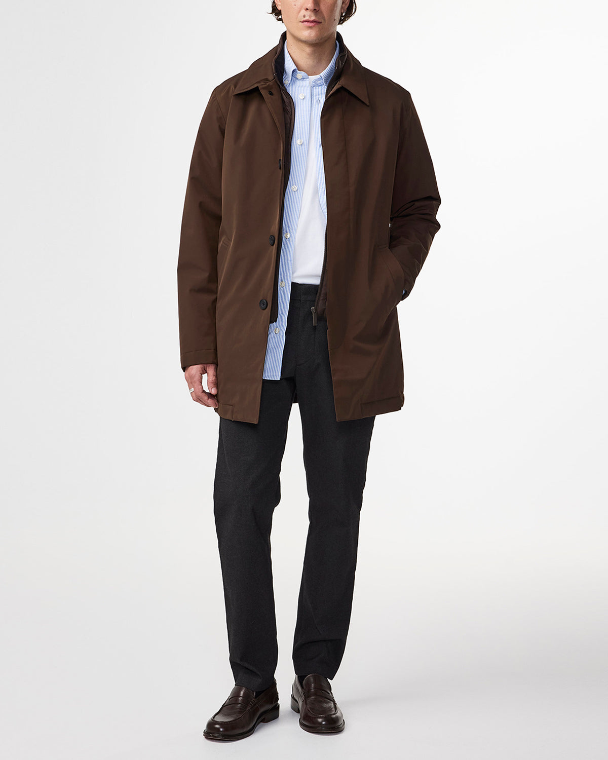 Denne overgangsfrakke kombinerer funktionalitet, komfort og moderne design. Jakken er fremstillet i et mellemvægtigt 2-lags stretchy twill-stof, der er både 100% vand- og vindtæt samt ultra-åndbart. Den aftagelige vest med PrimaLoft® Gold-isolering giver ekstra varme, så du kan tilpasse frakken efter vejr og behov.