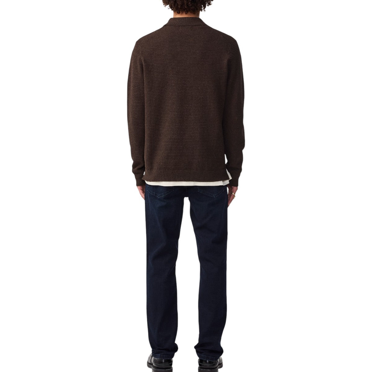 Denne klassiske polo med åben krave er strikket i økologisk bomuldsjersey og kombinerer afslappet komfort med et tidløst design. Den teksturerede struktur giver et raffineret udtryk, mens den bløde kvalitet sikrer en behagelig pasform hele dagen.