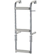 Topbeslaget kan udskiftes med et hængebeslag, så stigen kan afmonteres med et snuptag. Trinene kan justeres, så fødderne altid træder på en vandret flade - en god sikkerhedsfaktor. Testet i en saltvandssimulator, for at sikre at de kan modstå det maritime miljø. Vælg en badestige, som har 2 trin i vandet, når den er udfoldet.