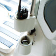 Flaske/dåseholderen kan også bruges til opbevaring af mobiltelefoner, VHF og GPS.