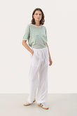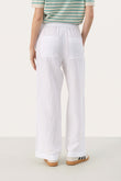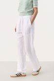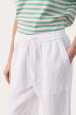 Disse lette hvide bukser er perfekte til sommerens varme dage. De er designet med en afslappet, bred pasform og har en elastisk linning med snøre, som giver en fleksibel og behagelig pasform. De store påsatte lommer foran tilføjer både stil og funktionalitet. Det luftige materiale sikrer komfort hele dagen og gør bukserne ideelle til både afslappede dage og ferielooks.