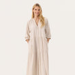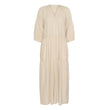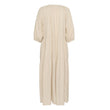 Med sin rummelige og luftige nederdel, er denne kjole ideel til varmere vejr, da den giver god bevægelsesfrihed og åndbarhed. Den elegante beige farve gør det nemt at style den til enhver lejlighed, og de bæredygtige materialer giver dig et stilfuldt look med god samvittighed.
