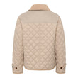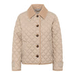 En klassisk, let quiltet jakke i en blød, sandfarvet nuance med kontrastkant og krave i lysebrun fløjl.