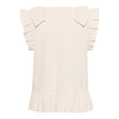 Denne smukke top kombinerer et feminint design med let struktur i stoffet, hvilket giver et afslappet, men elegant udtryk. De fine flæsedetaljer ved skuldre, udskæring og kant giver en romantisk fornemmelse, der gør den perfekt til både hverdagsbrug og festlige lejligheder.