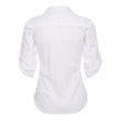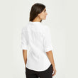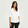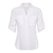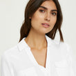 Den har v-udskæring, to brystlommer samt 3/4 ærmer der kan smøges op og hæftes med knap.