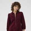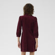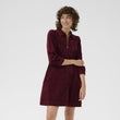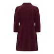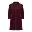 En moderne corduroy-kjole i en dyb bordeaux, der kombinerer workwear-inspirerede detaljer med et feminint snit. Den bløde fløjl giver struktur og varme, mens lynlåsen foran og skjortekraven gør den nem at style – fra støvler i hverdagen til loafers eller hæle til aften.
