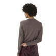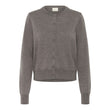 Modellen er 177 cm høj og bærer en størrelse M. Denne elegante cardigan i farven Tawny Port har en rund hals og en tætsiddende silhuet, der fremhæver et klassisk og tidløst udtryk.