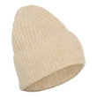 Denne bløde, strikkede hue i en varm beige nuance er et stilrent og praktisk tilbehør til de kolde måneder. Designet har et bredt ombuk, der både giver ekstra varme omkring ørerne og et moderne udtryk. Den ribstrikkede struktur tilføjer tekstur og sikrer en behagelig pasform, der sidder godt på hovedet uden at stramme. Perfekt til både hverdag og udendørs aktiviteter i vinterhalvåret.