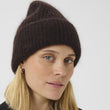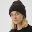Denne mørkebrune, strikkede hue er et klassisk og alsidigt vintertilbehør, der kombinerer varme og stil. Den ribstrikkede struktur giver et tidløst udtryk, mens det brede ombuk tilføjer både ekstra varme omkring ørerne og et moderne look. Den bløde og lune kvalitet sikrer høj komfort, hvilket gør huen ideel til både hverdagsbrug og udendørsaktiviteter i den kolde sæson.
