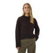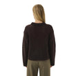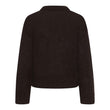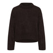 En blød, chunky strik i en dyb mørkebrun nuance, der giver varme og ro til vintergarderoben. Sweateren har en rummelig, let boxy pasform og en anelse kortere længde, som er nem at style over kjoler eller til højtaljede bukser. Den brede rib i hals, ærmer og bund fuldender det klassiske look.