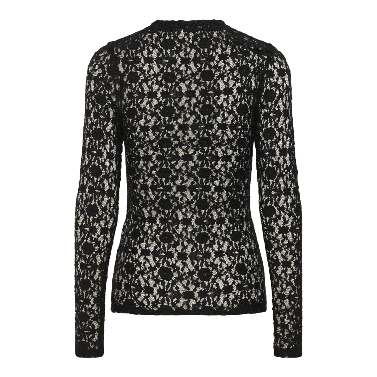Elegant sort blondebluse fra Part Two med et sofistikeret og feminint udtryk. Blusen er fremstillet i en elastisk blondekvalitet med smukke detaljer og en tætsiddende pasform, der fremhæver figuren på en elegant måde.