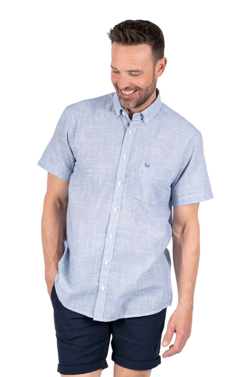 Denne kortærmede skjorte har et let og stilrent design, der gør den ideel til varme dage. Den diskrete struktur i stoffet giver et elegant og afslappet udtryk, som fungerer perfekt til både hverdag og sommerens mere velklædte lejligheder.