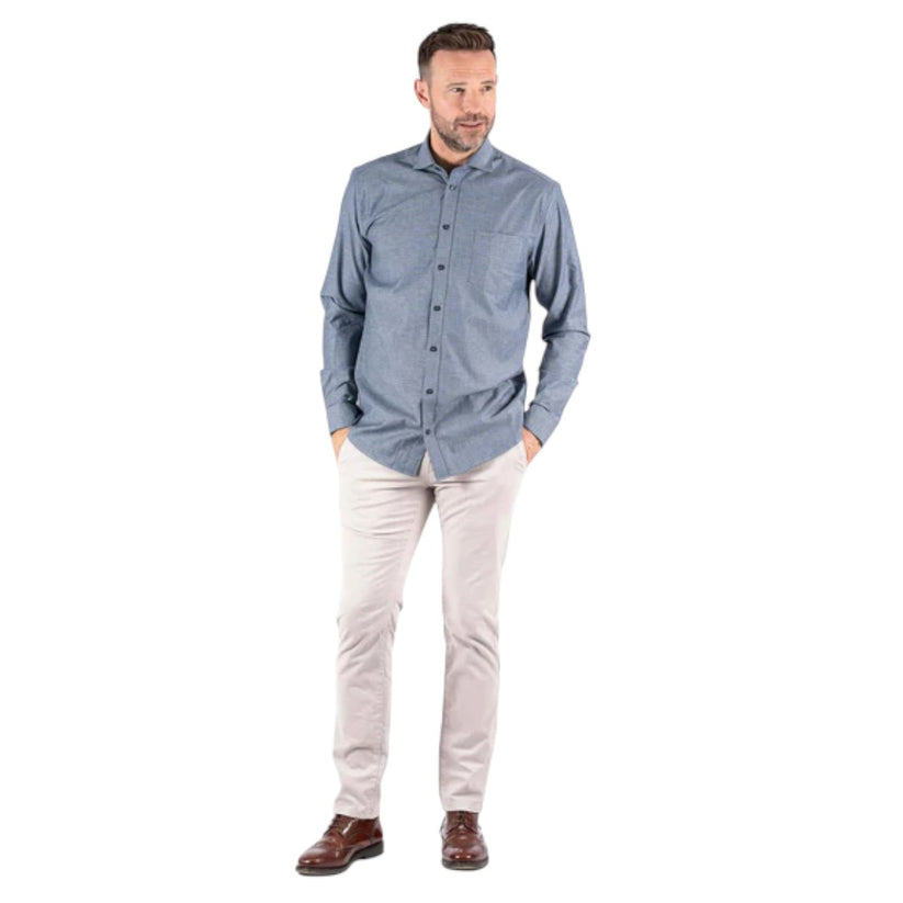 Klassisk struktur skjorte, med brystlomme og kontrast knapper.