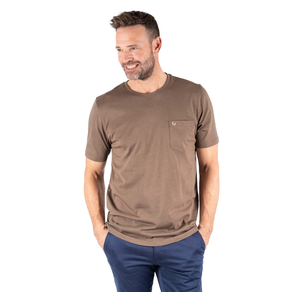 Brystlommen tilfører et diskret, funktionelt element, som giver T-shirten lidt ekstra karakter.