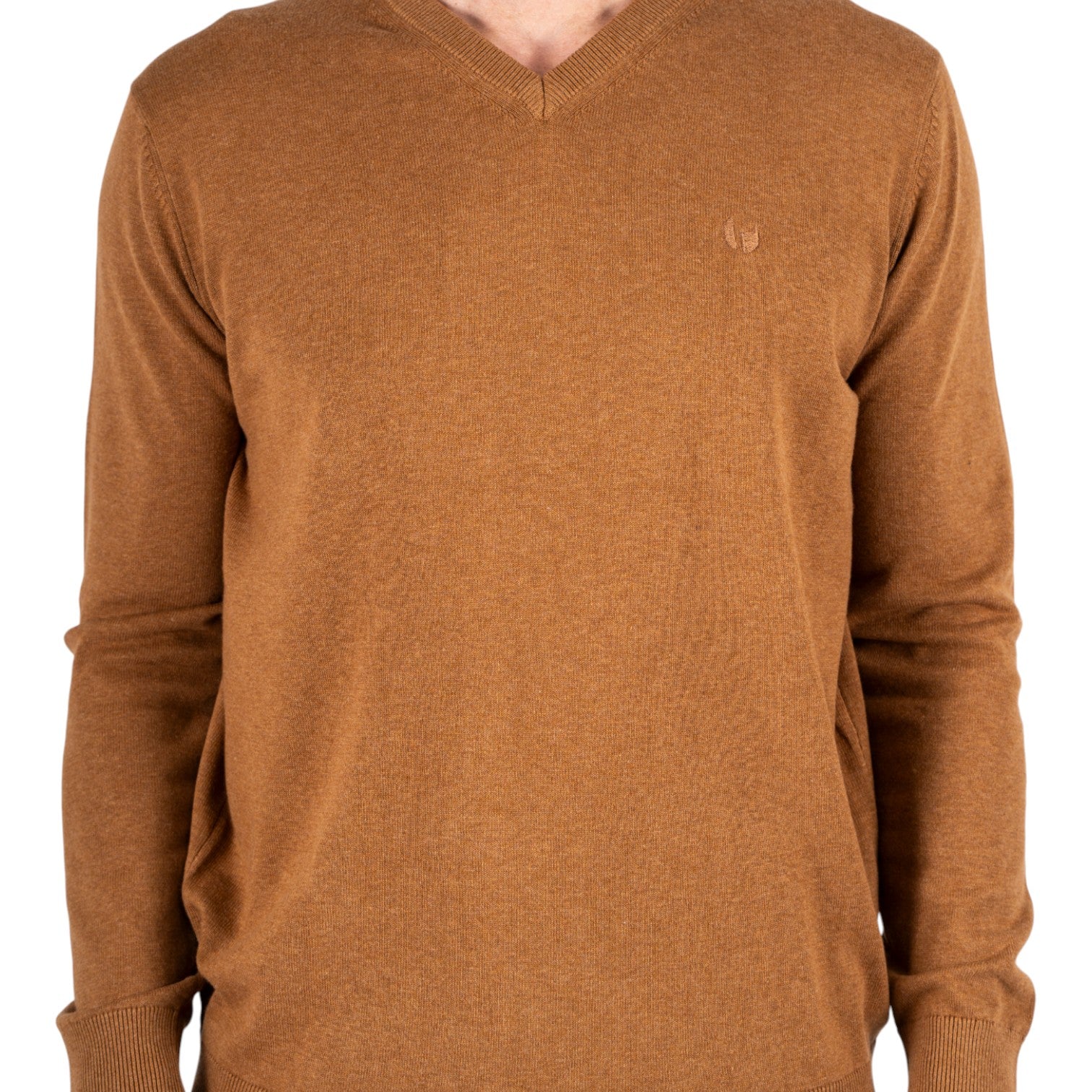 Den varme cognacfarve tilfører garderoben et moderne og eksklusivt touch, og trøjen fungerer perfekt både alene og over en skjorte for et mere formelt look.