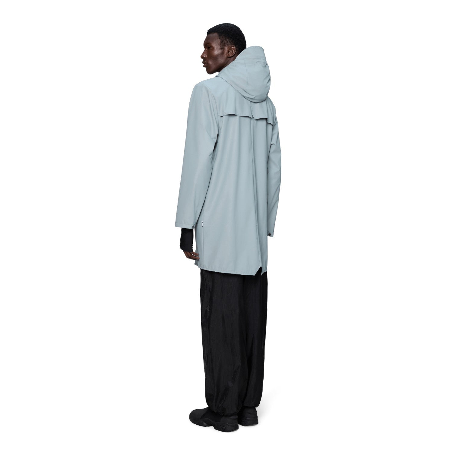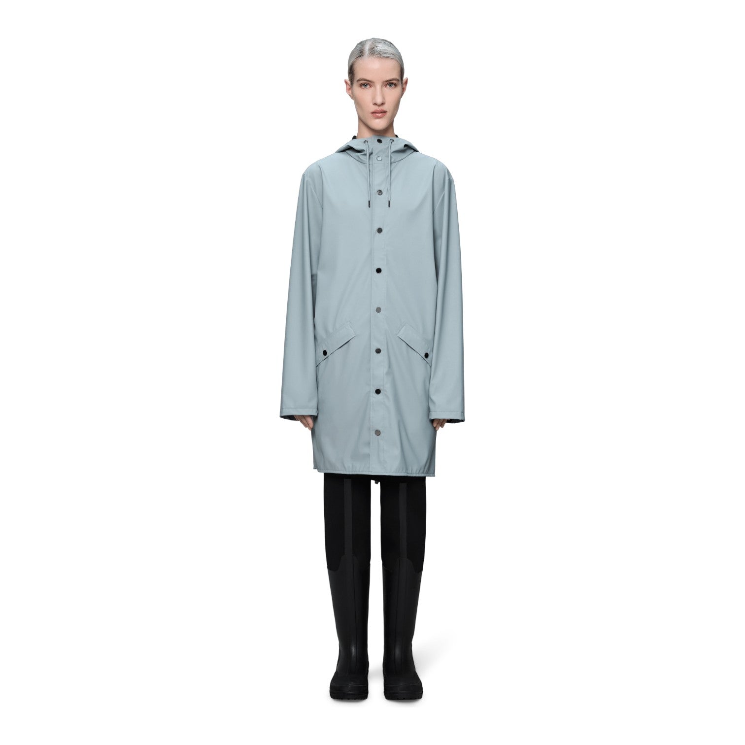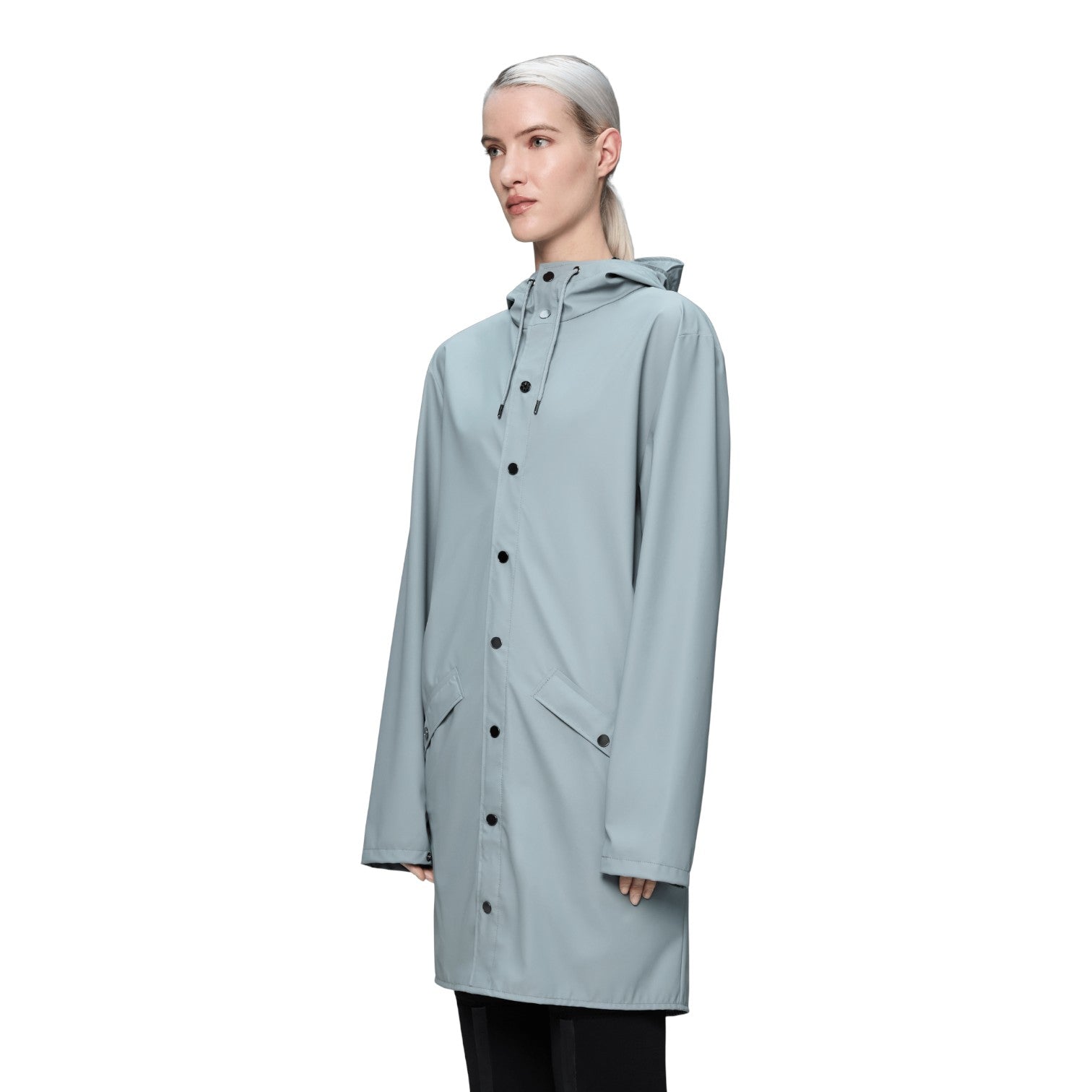 Long Jacket er en forlænget version af Rains’ klassiske regnjakke, designet i et tidløst og minimalistisk unisex-udtryk. Jakken har en lige, elegant silhuet med praktiske detaljer som hætte med skygge og snøre, skrå dobbeltsvejsede lommer med klap, og trekantet fishtail-slids bagpå for optimal bevægelsesfrihed.