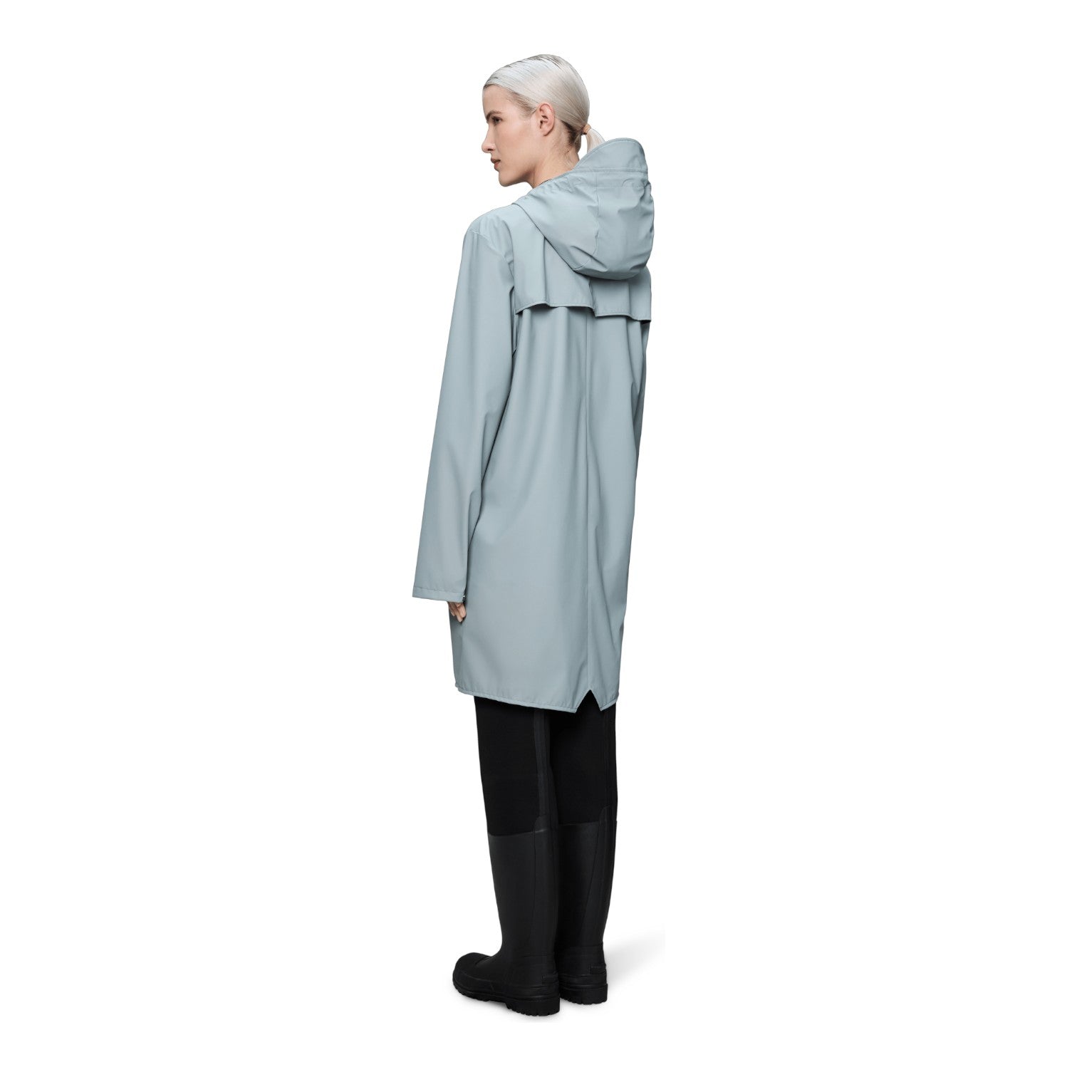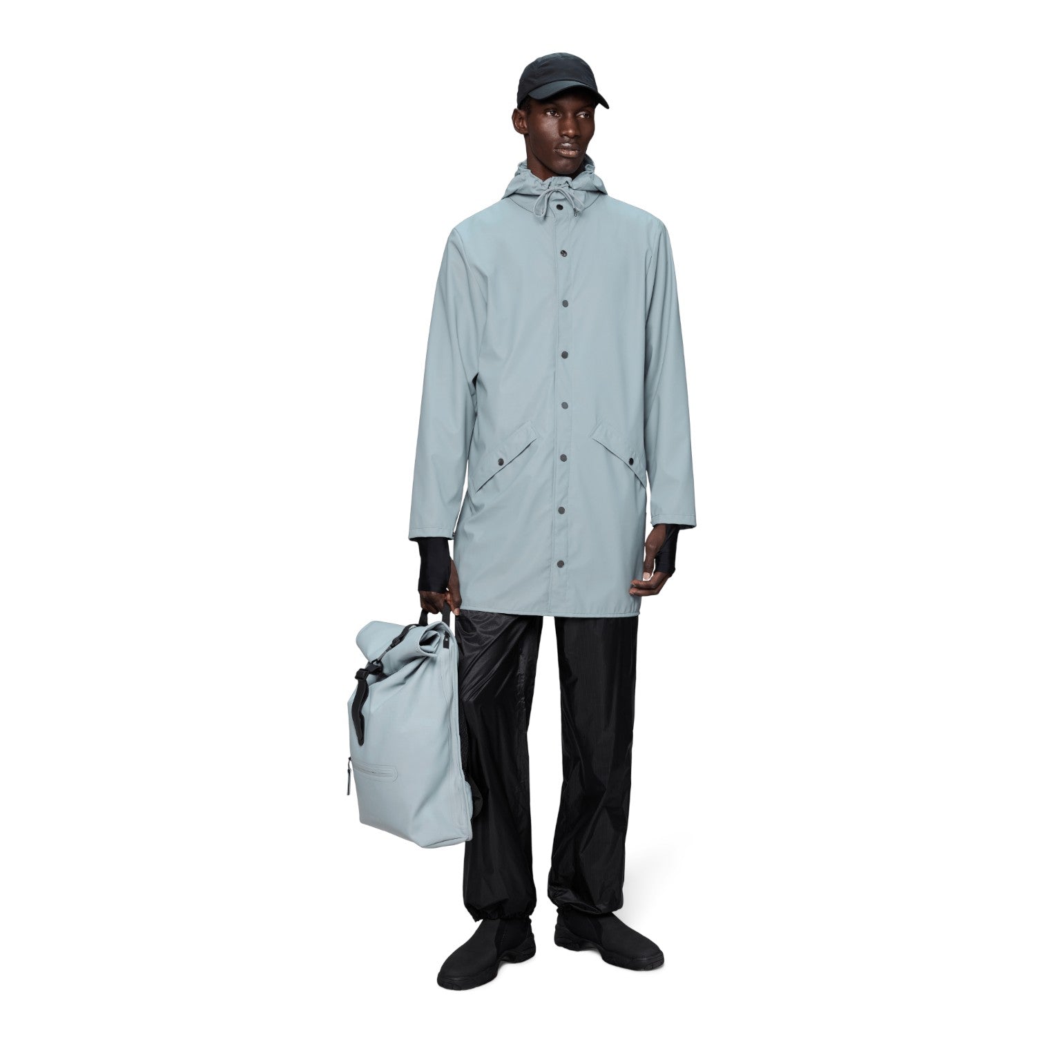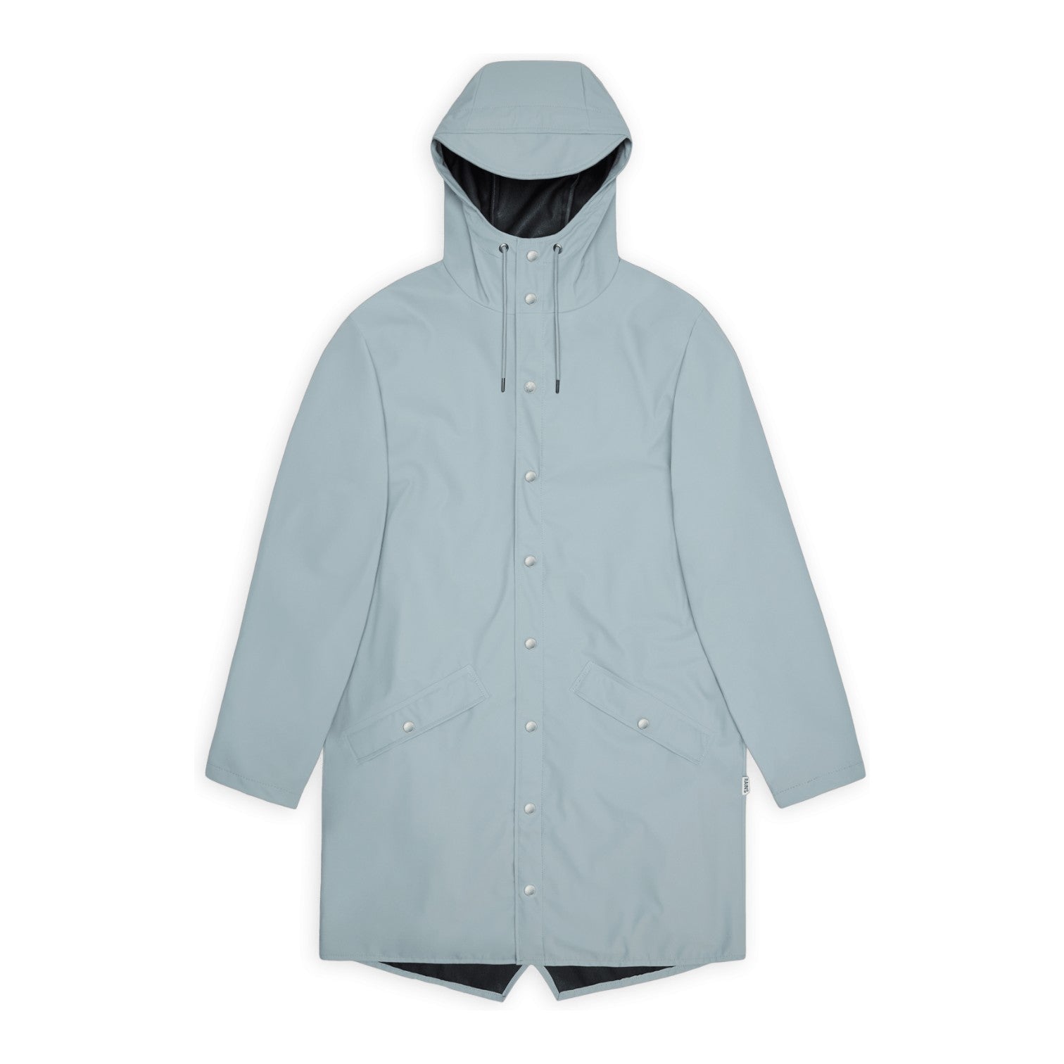 Long Jacket er en forlænget version af Rains’ klassiske regnjakke, designet i et tidløst og minimalistisk unisex-udtryk. Jakken har en lige, elegant silhuet med praktiske detaljer som hætte med skygge og snøre, skrå dobbeltsvejsede lommer med klap, og trekantet fishtail-slids bagpå for optimal bevægelsesfrihed.