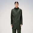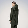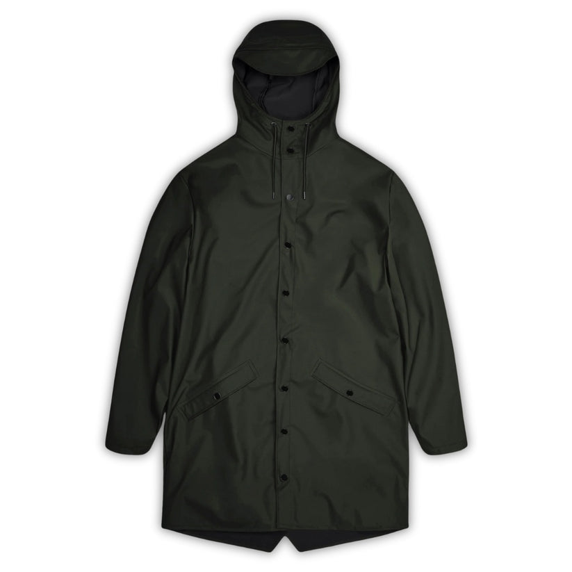 Long Jacket er fremstillet i Rains’ vandtætte signatur PU-materiale og har svejsede sømme samt en let og blød finish.