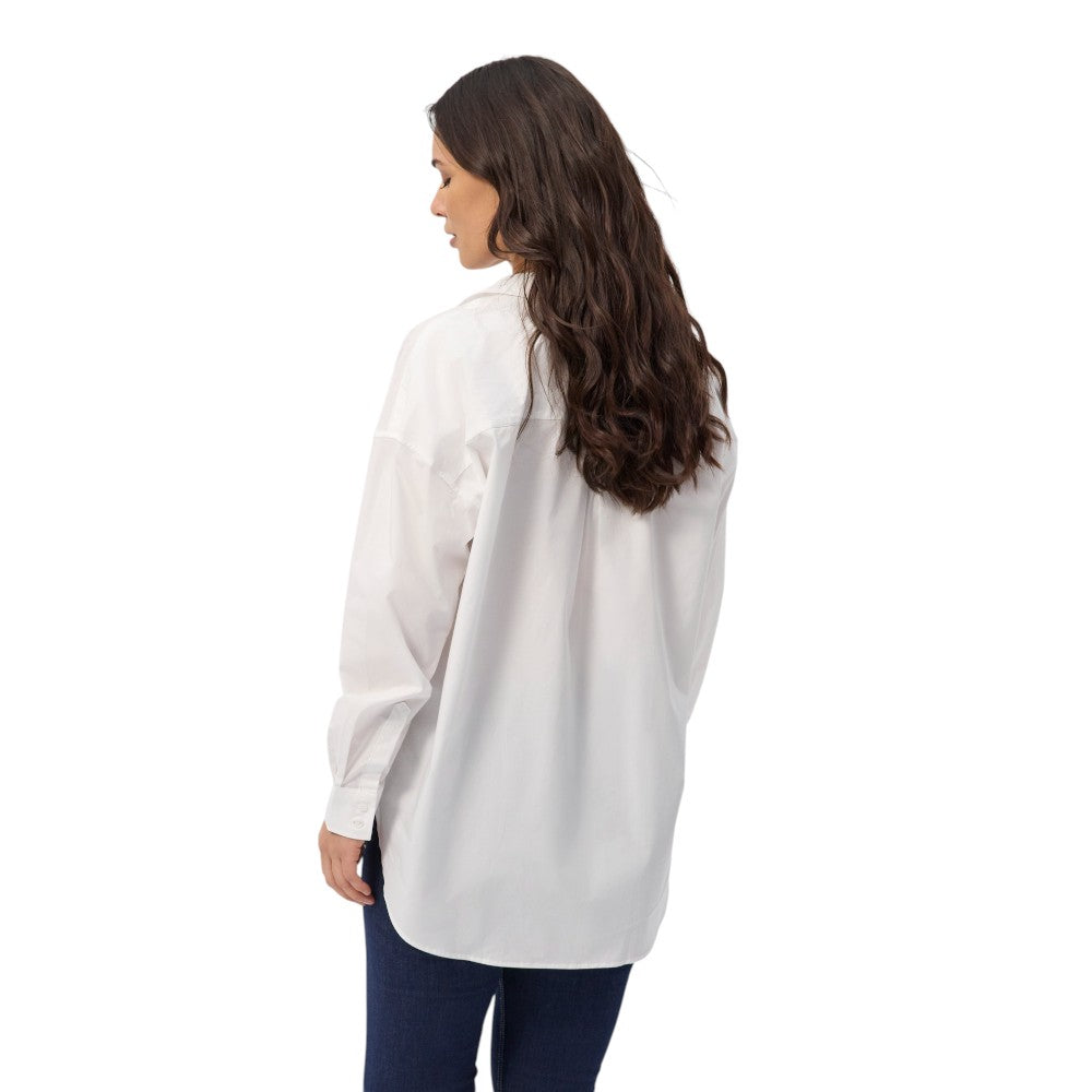 Den perfekte løstsiddende skjorte i et klassisk bomuldspoplinstof. Skjorten har knapper foran og ved ærmekanten. Den har en afrundet kant forneden og er lidt længere bagpå. Der er et lille tonalt logobroderi bagpå ærmestolpen.