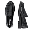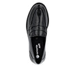 En moderne twist på den klassiske penny loafer: disse elegante slip-on sko i sort, højglanslæder med let strukturoverflade og kraftig, mønstret gummisål.
