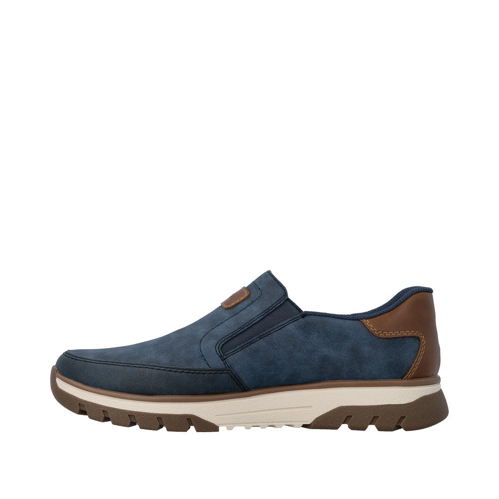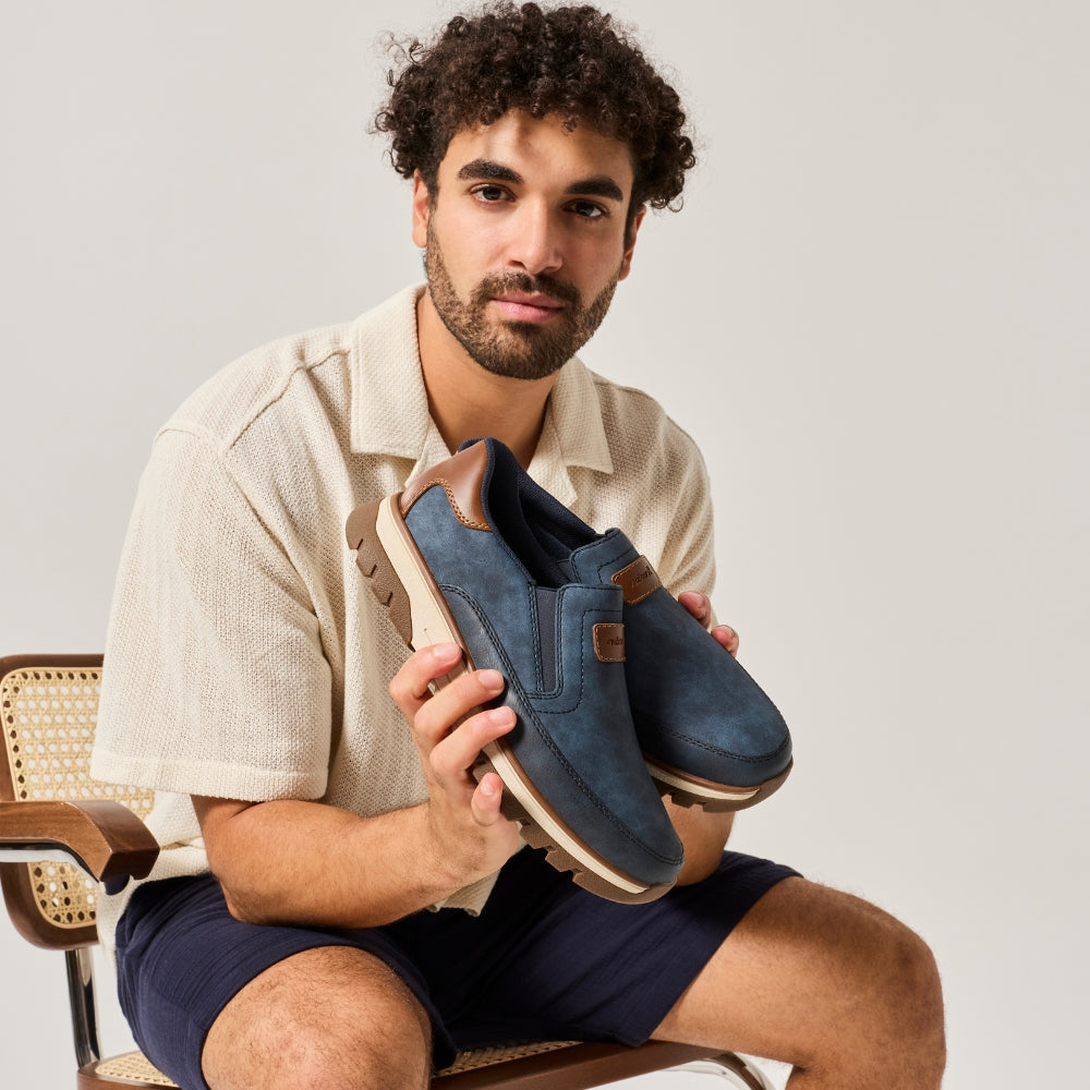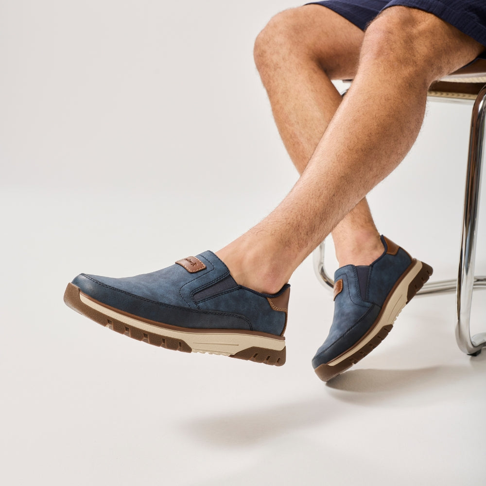 Rieker hyttesko til herre i blå er et komfortabelt og moderne valg til hverdagsbrug. Skoen har et afslappet og stilrent udtryk, der gør den velegnet både indendørs og til korte ture udenfor, hvor komfort og funktionalitet er i fokus.