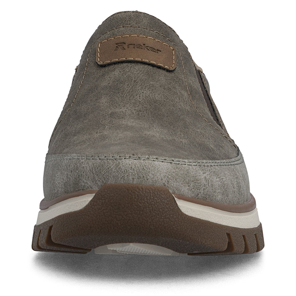Rieker sko til herre i gråbrune nuancer er et komfortabelt og praktisk valg til hverdagen. Skoen har et klassisk og afslappet udtryk med en blød overdel, der giver et pænt look, som nemt kan bruges til både jeans og mere casual outfits.