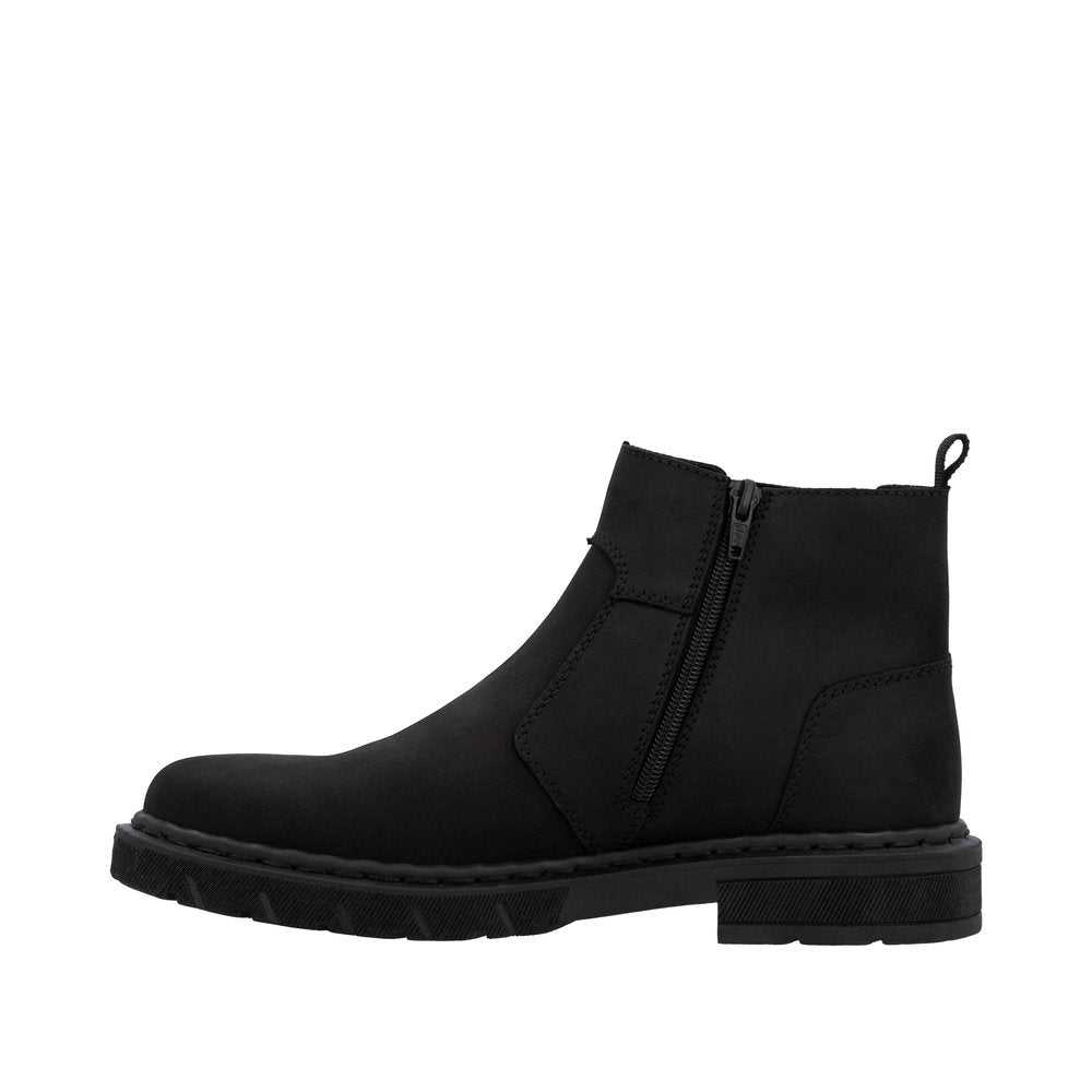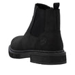 Rieker herrestøvlen i sort skind forener et tidløst design med høj funktionalitet og komfort. Det klassiske udtryk gør den velegnet til både hverdagsbrug og pænere anledninger. Støvlen er udstyret med både elastik og lynlås i siden, så den er nem at tage af og på, samtidig med at pasformen bliver fleksibel og behagelig.