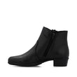 Denne klassiske støvle fra Rieker er fremstillet i skind og designet med en elegant detalje, der giver et feminint og tidløst udtryk. Lynlåsen i siden gør det nemt at tage støvlen af og på, mens den lille hæl på 3 cm giver et diskret og behageligt løft.
