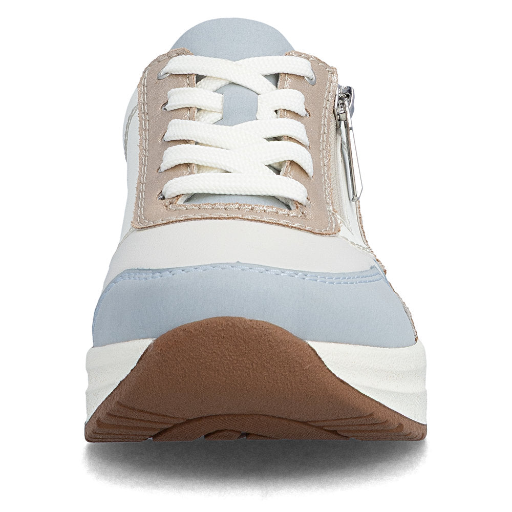 Skoen er udstyret med både snørebånd og en funktionel lynlås, som gør den nem at tage af og på og samtidig giver mulighed for at tilpasse pasformen. Den udtagelige Rieker Soft-indersål føles behagelig mod foden og giver god støtte hele dagen. Den ekstra bredde H sikrer en rummelig pasform og er ideel til dig, der har brug for lidt ekstra plads og komfort i hverdagen.