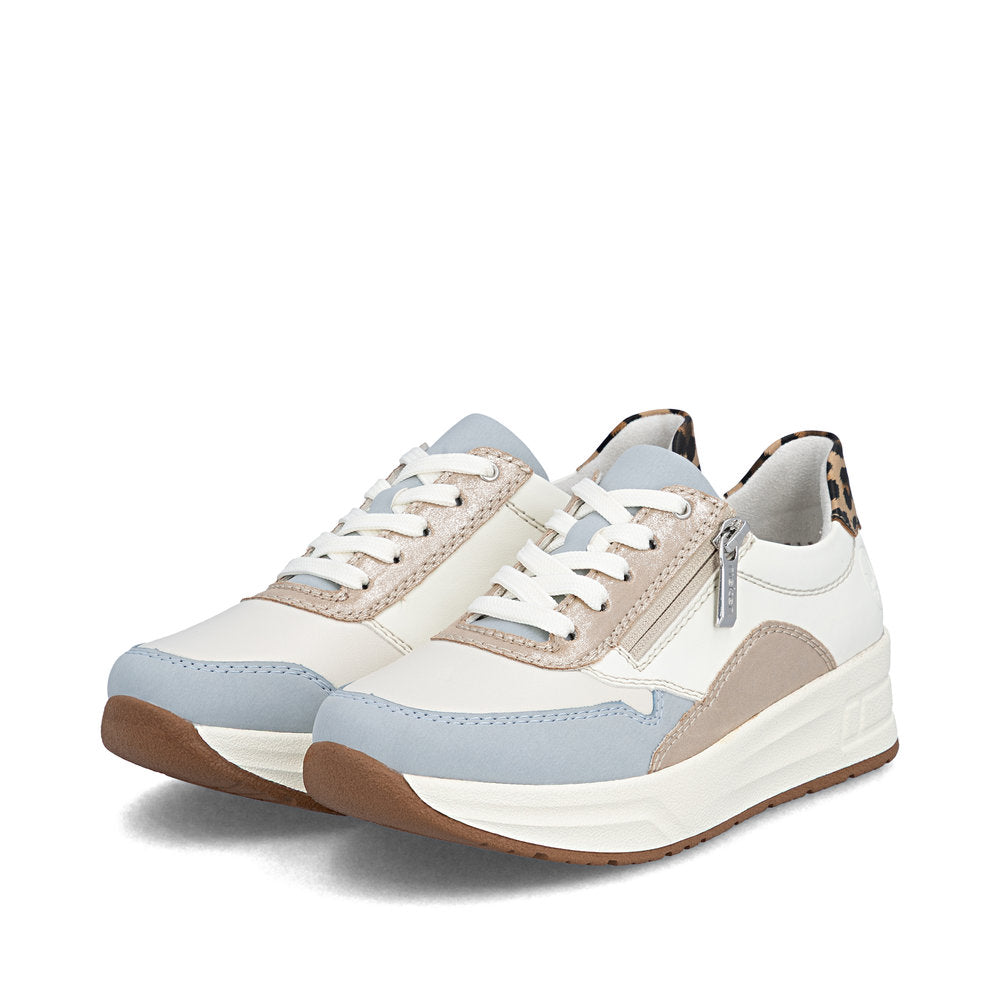 Rieker sneakers til dame i multifarve er et alsidigt og komfortabelt valg med et tidløst udtryk. Det klassiske multifarve design gør skoen nem at style, mens skinddetaljer på overdelen tilfører et elegant og eksklusivt touch, der løfter helhedsindtrykket.