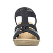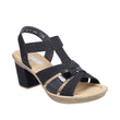 Disse elegante Rieker sandaler til damer er den perfekte blanding af raffinement og komfort. Udført i et mat sort design, tilføjer de en lak rem, som skaber et unikt og fint touch, hvilket gør dem ideelle til både hverdagsbrug og mere formelle lejligheder.