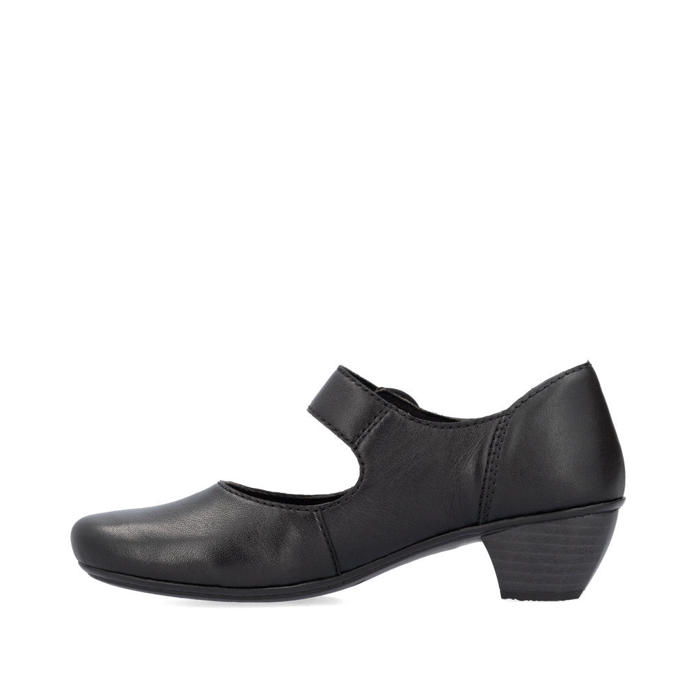 Denne klassiske Mary Jane-sko kombinerer feminint design med høj komfort – perfekt til både arbejde og hverdag. Den enkle sortfarvede overflade og runde spænde giver et tidløst udtryk, mens den lave hæl giver et elegant løft uden at gå på kompromis med stabiliteten.