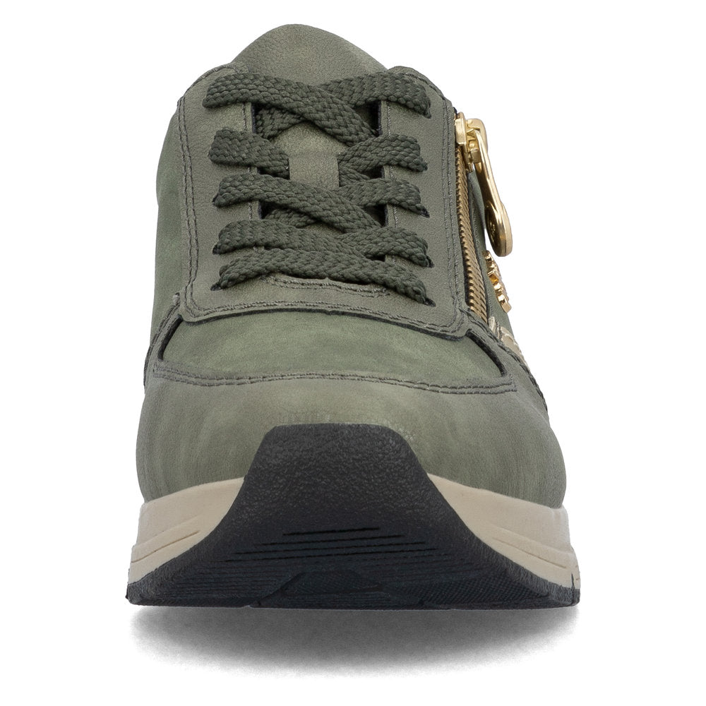Denne moderne sneaker fra Rieker kombinerer komfort og funktionalitet i et sporty og stilfuldt design. Skoen har snørebånd samt en praktisk lynlås i siden, som gør den nem at tage af og på. Den bløde indersål og fleksible ydersål gør den ideel til lange dage på benene – både til arbejde og fritid.