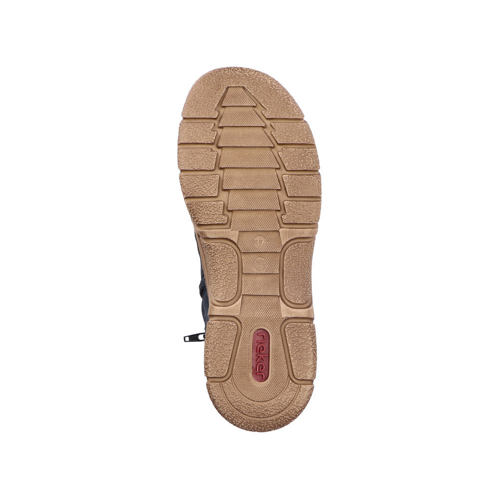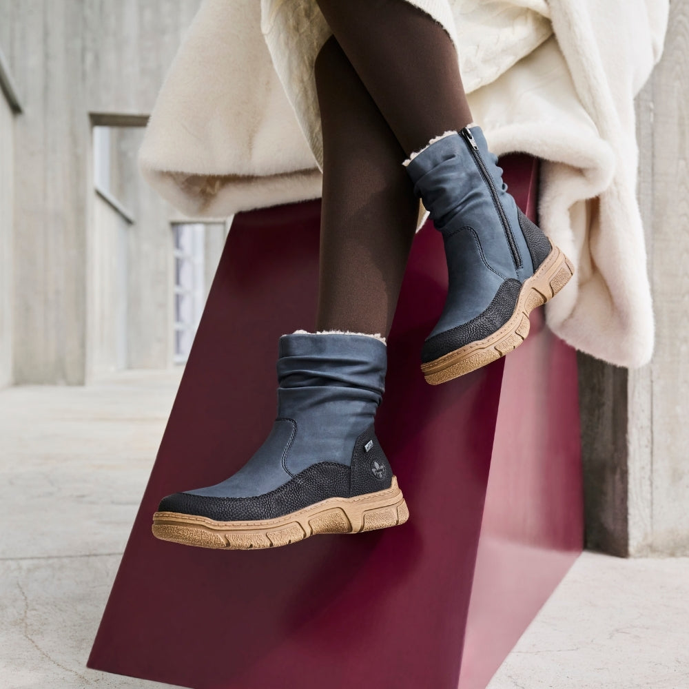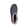 Denne elegante Rieker støvle i blå kombinerer funktionalitet med et moderne udtryk. Den praktiske lynlås i siden gør det nemt at tage støvlen af og på, mens den varme foring og bløde, udtagelige indersål giver komfort hele dagen.