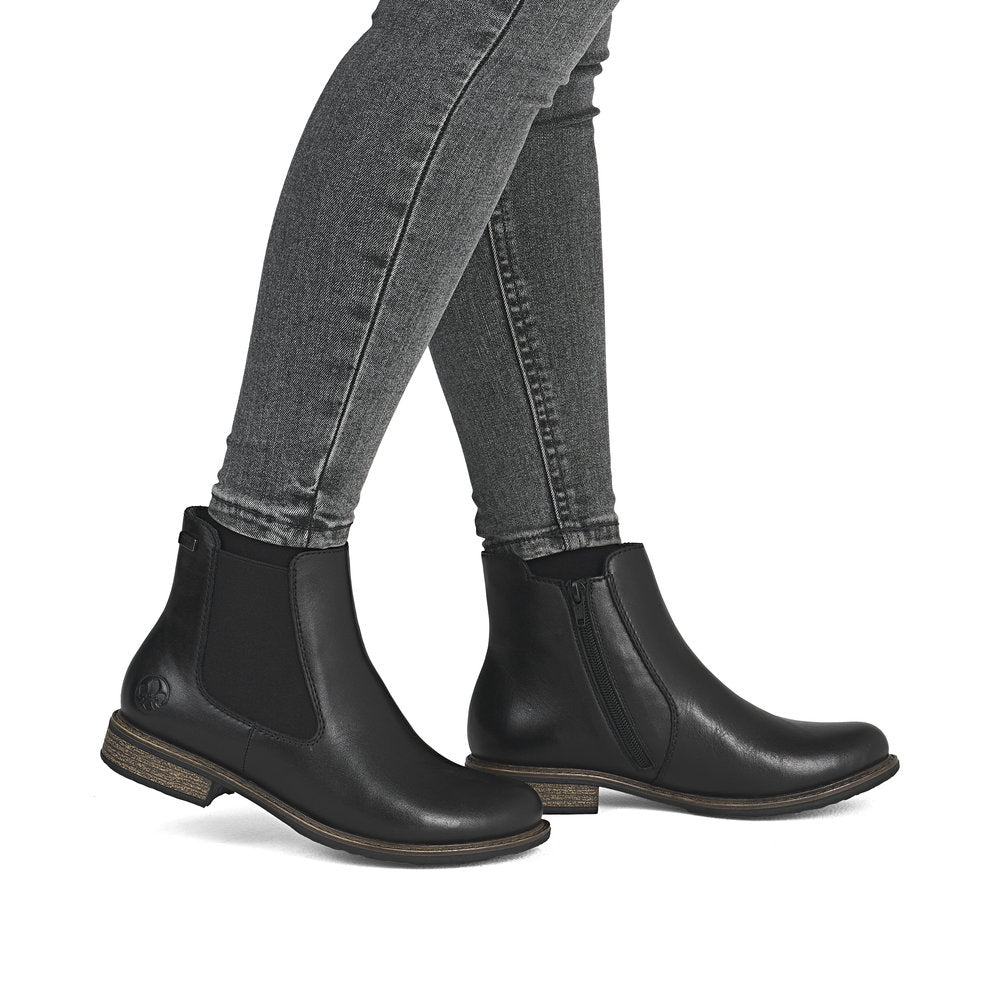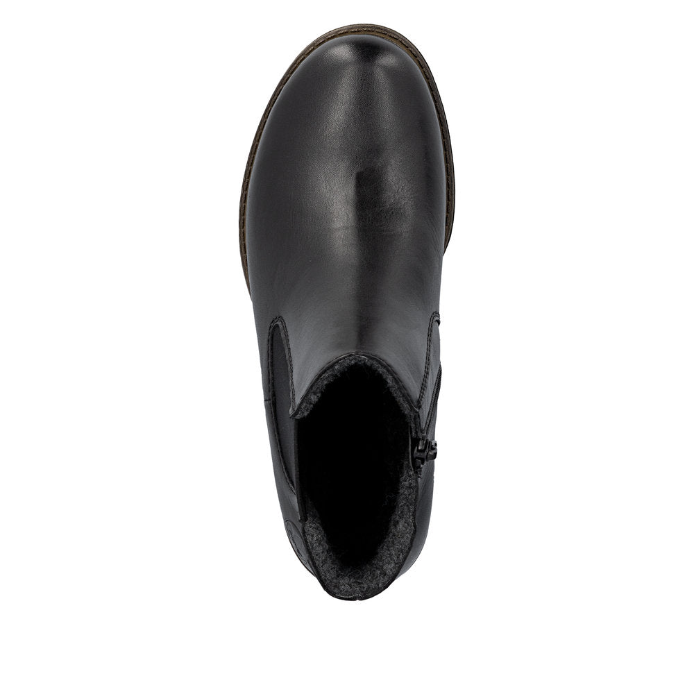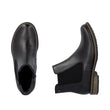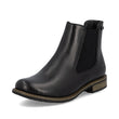 En klassisk Chelsea-støvle fra Rieker, der kombinerer enkelt design med funktionalitet og komfort. Den elegante sorte overdel får et moderne udtryk med elastiske sidepaneler, der gør det nemt at få støvlen af og på.