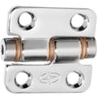 Rustfri hængsel med indbygget friktions dæmpning. Som betyder at de går lidt trægt, hvilket kan være en fordel da de låser åbningen evt. på midten når du åbner en luge. Det betyder også at lugen ikke klapper ned utilsigtet.
