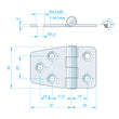 Hængsel af rustfrit og syrefast stål AISI 316.