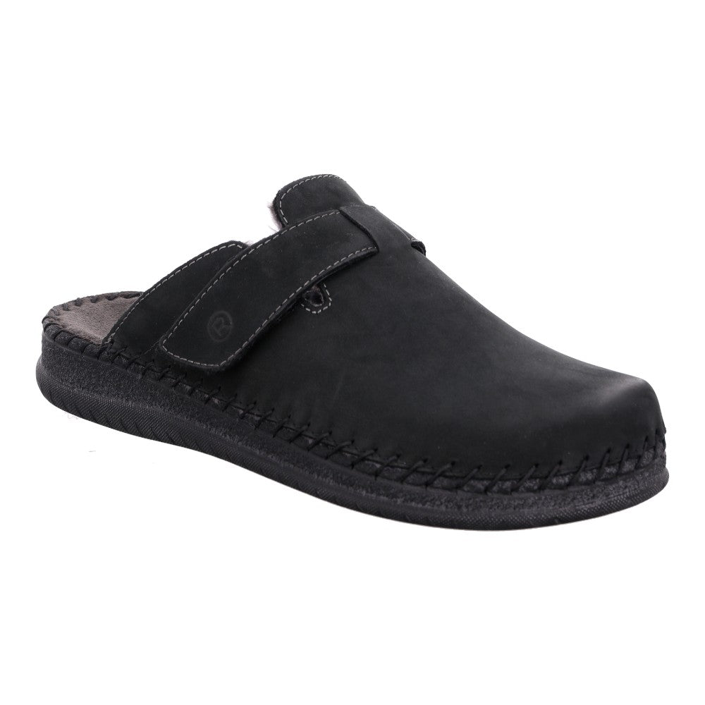 Denne hjemmesko kombinerer et klassisk design med høj komfort og funktionalitet. Den sorte overdel i et enkelt og tidløst udtryk gør skoen velegnet til daglig brug i hjemmet, mens den lukkede front holder foden varm. Den justerbare rem over vristen giver mulighed for individuel tilpasning og sikrer en behagelig pasform.