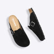 Udstyret med en skridsikker sål, garanterer disse træsko et sikkert greb på alle typer underlag, mens den dybe, åndbare indersål af velourslæder, forstærket med en fleksibel kork-latex-kerne, sikrer ubesværet komfort gennem hele dagen.