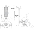 En justerbar tabletklemme sikrer montering af mini- og fuldstørrelses-tablets. Passer til enheder fra 125 mm til 220 mm (5-8¼").