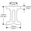 - SKU 130RC06190X30: Bredde: 19,0 mm, Hulafstand: 100 mm, Højde: 24 mm, Længde: 2996 mm, Passer til: Serie 19
