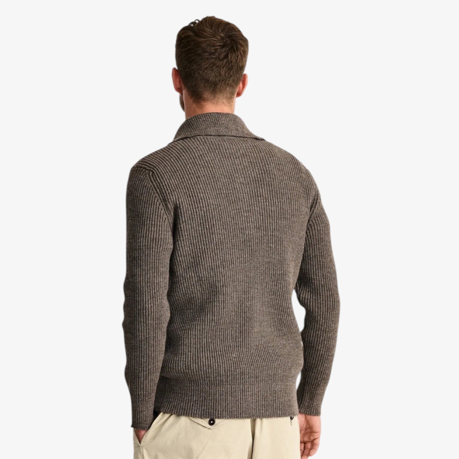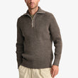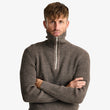 En eksklusiv og struktureret striktrøje med kort lynlås, inspireret af klassisk civilforsvarsarv og moderne håndværk. Sweateren er tætstrikket i en elastisk plated-struktur, der kombinerer fin merinould belagt med ren ny uld for maksimal holdbarhed, varme og formstabilitet.